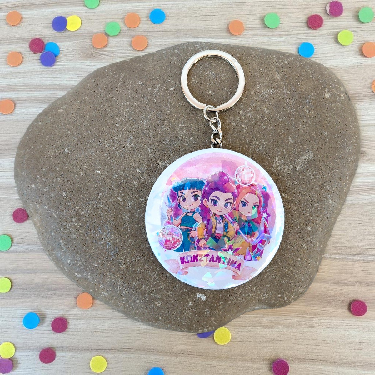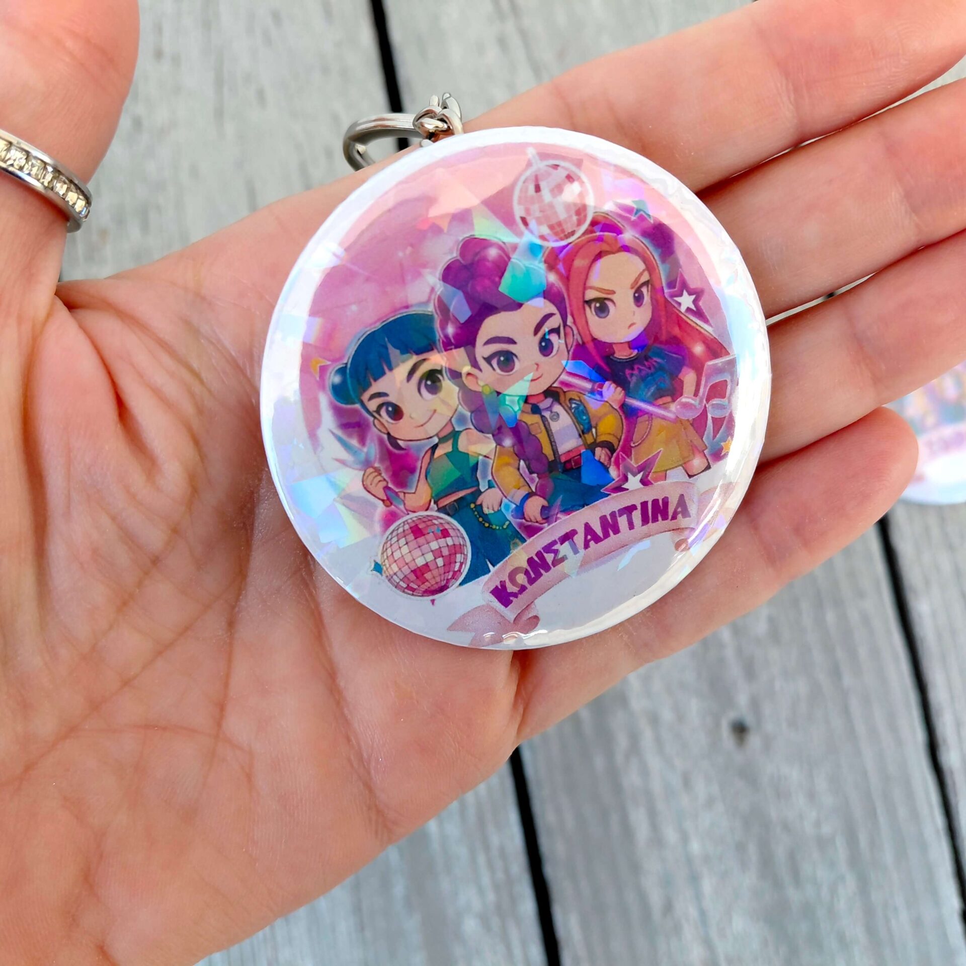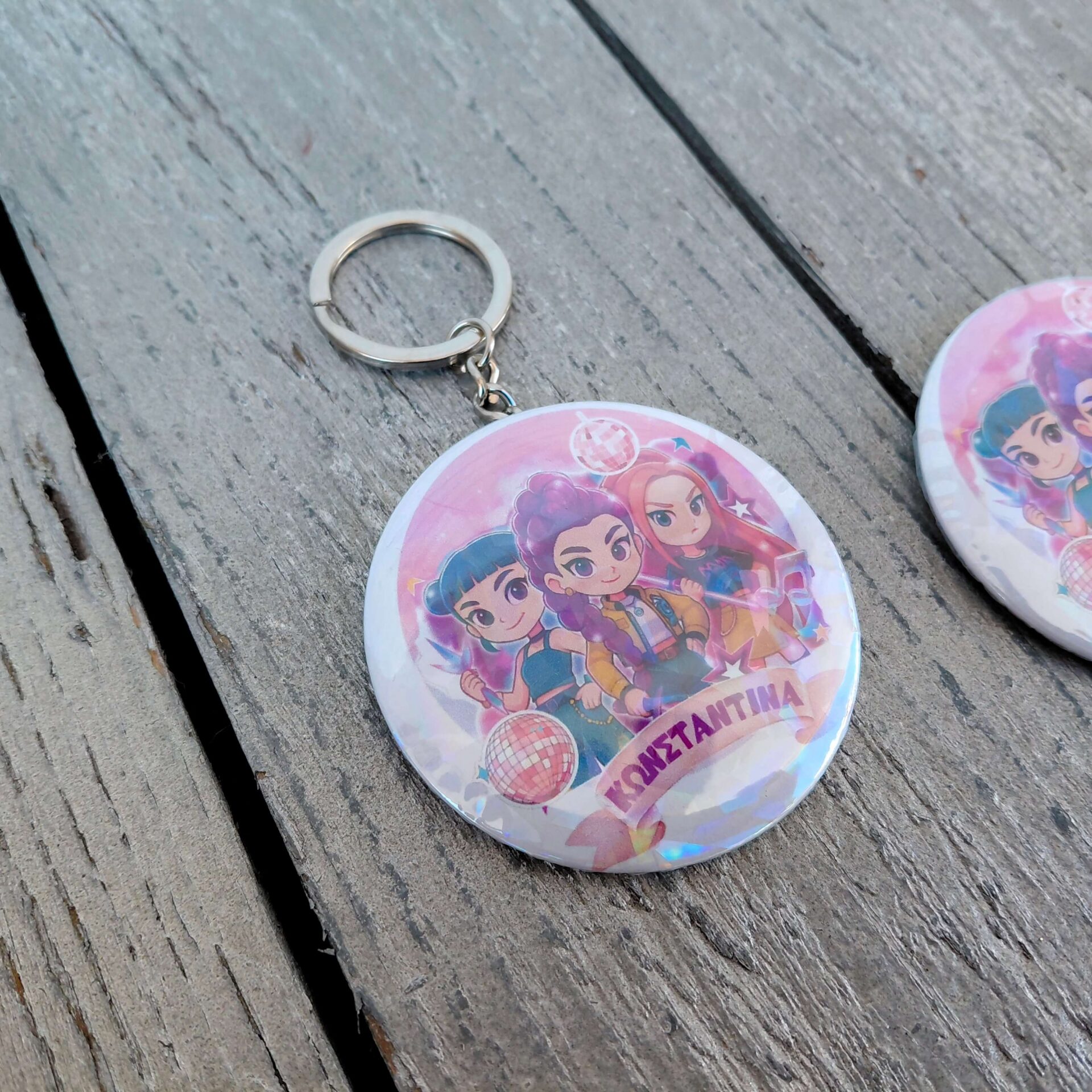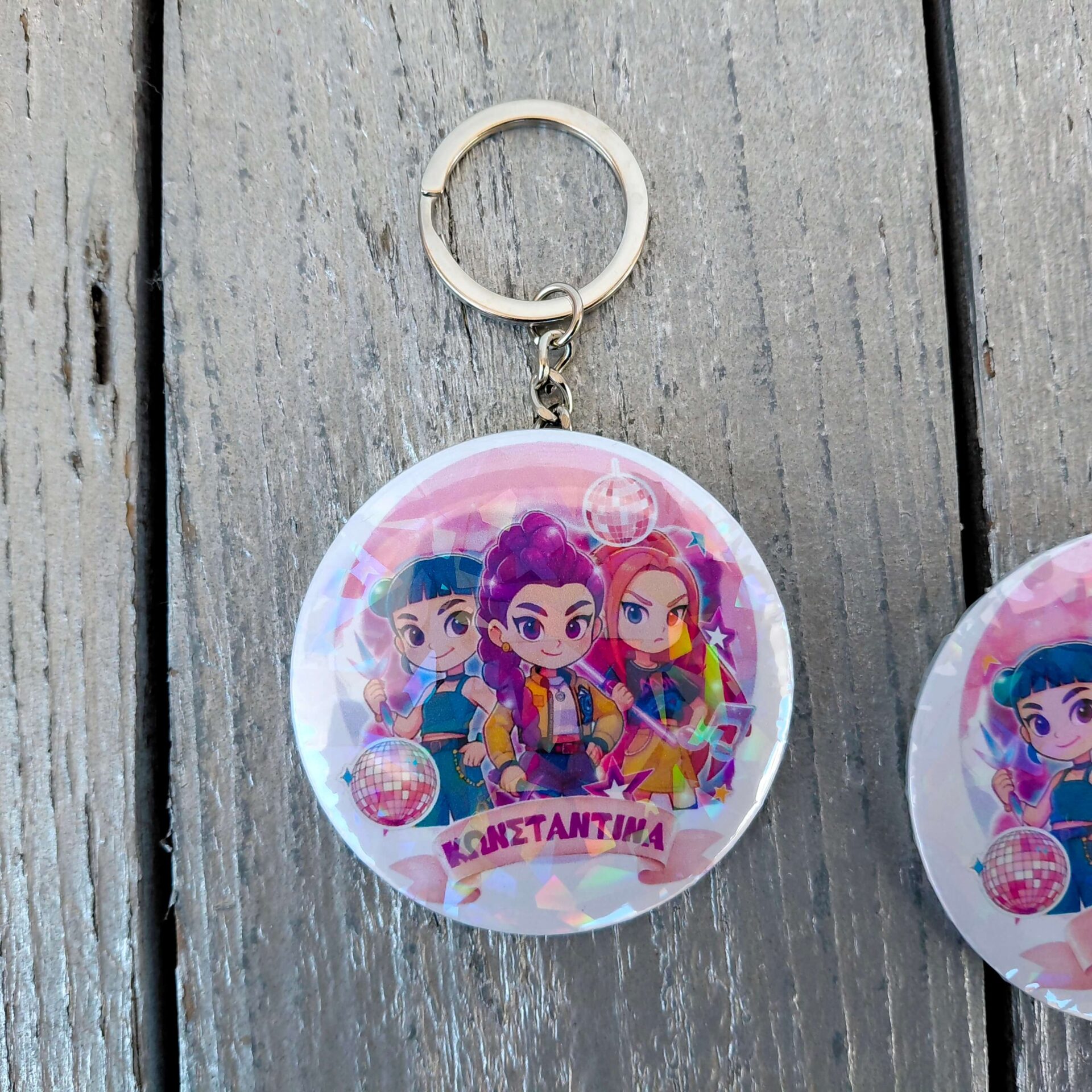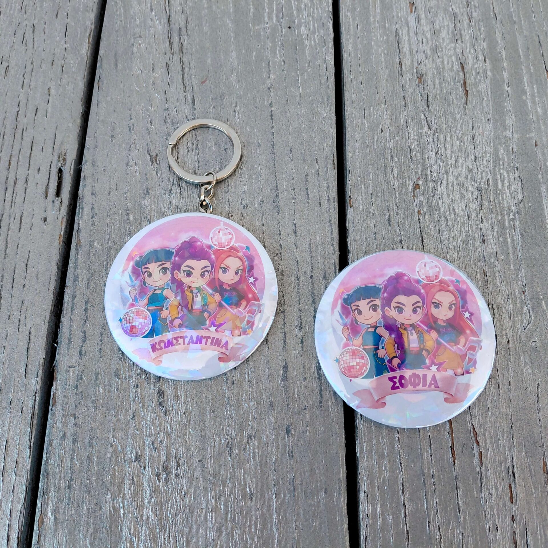 Επίλεξε το αγαπημένο σου αξεσουάρ Huntrix! Διαθέσιμο ως Μπρελόκ, Μαγνητάκι ή Κονκάρδα με εκθαμβωτικό ιριδίζον εφέ και διάμετρο 5.8εκ.