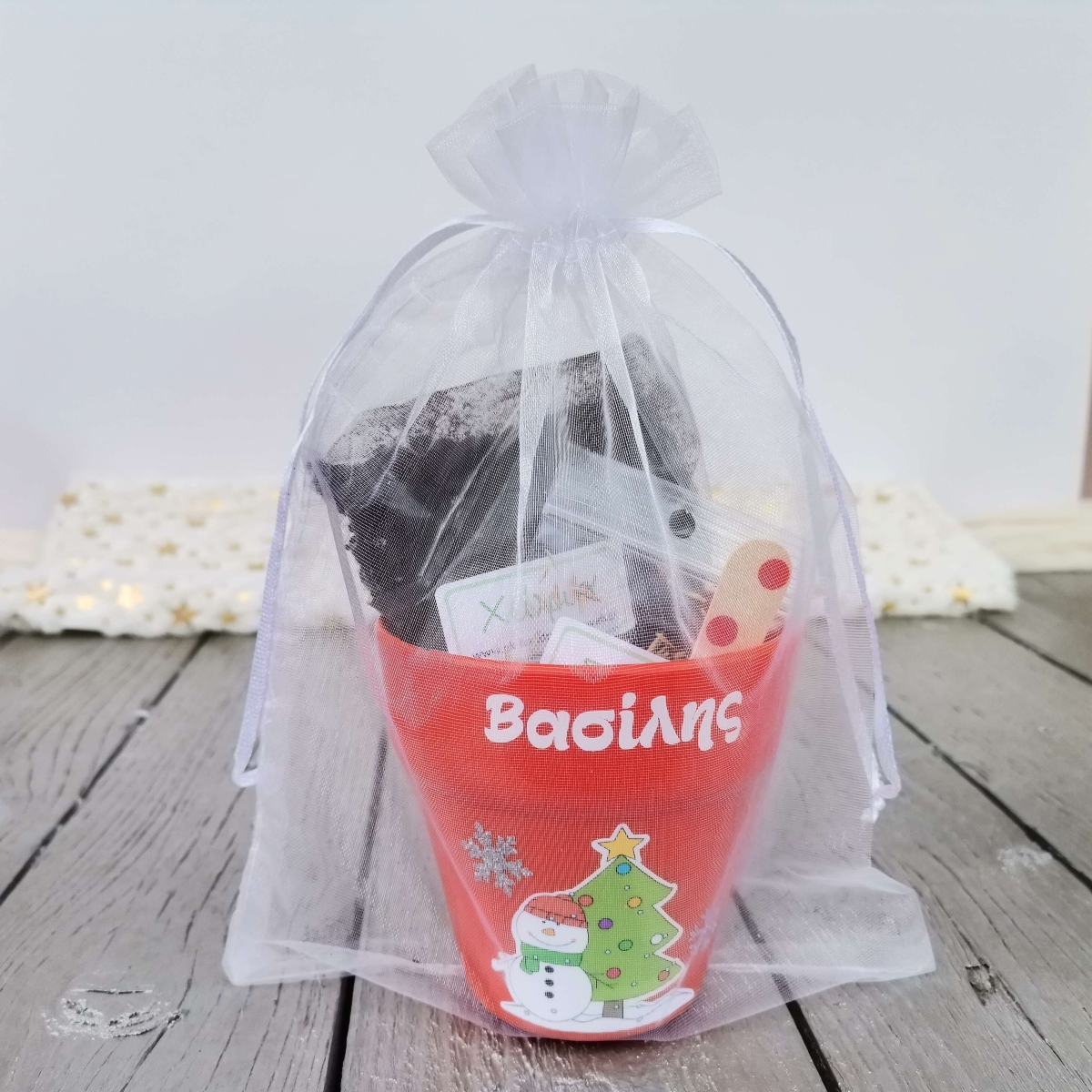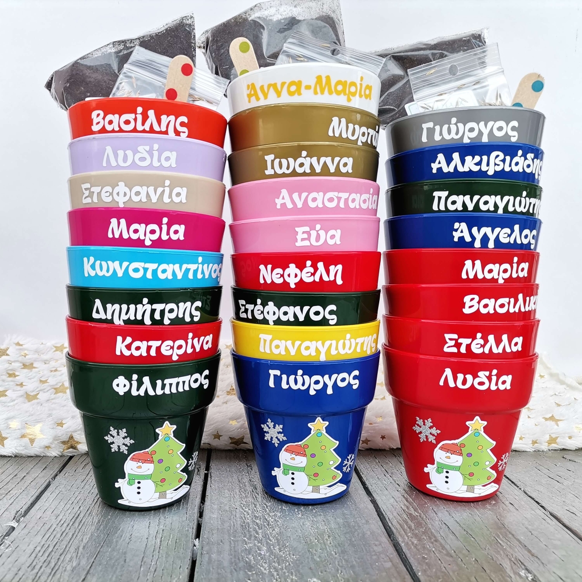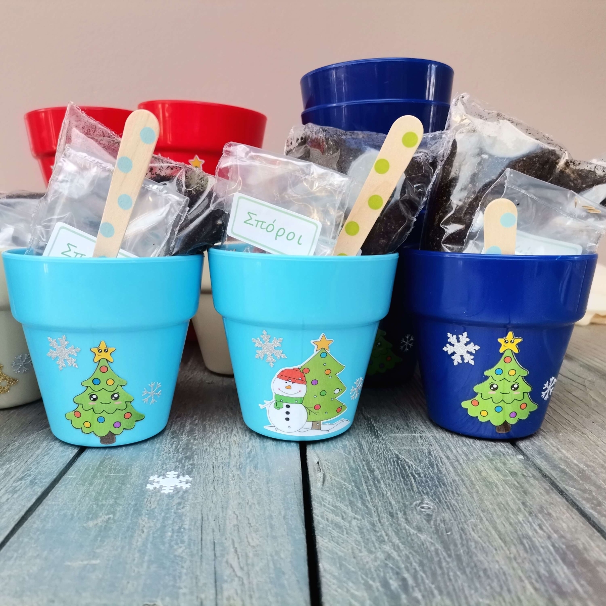 Τα Χειροποίητα Χριστουγεννιάτικα Δωράκια Γλαστράκια Φύτευσης είναι το πιο πρωτότυπο και οικολογικό δώρο! 🪴 Δώστε μια πολύχρωμη νότα σε παιδικά πάρτυ και γιορτές. Επιλέξτε το αγαπημένο σας σχέδιο και εξατομικεύστε το με όνομα! (Διαστάσεις: 8,5εκ x 8,0εκ).