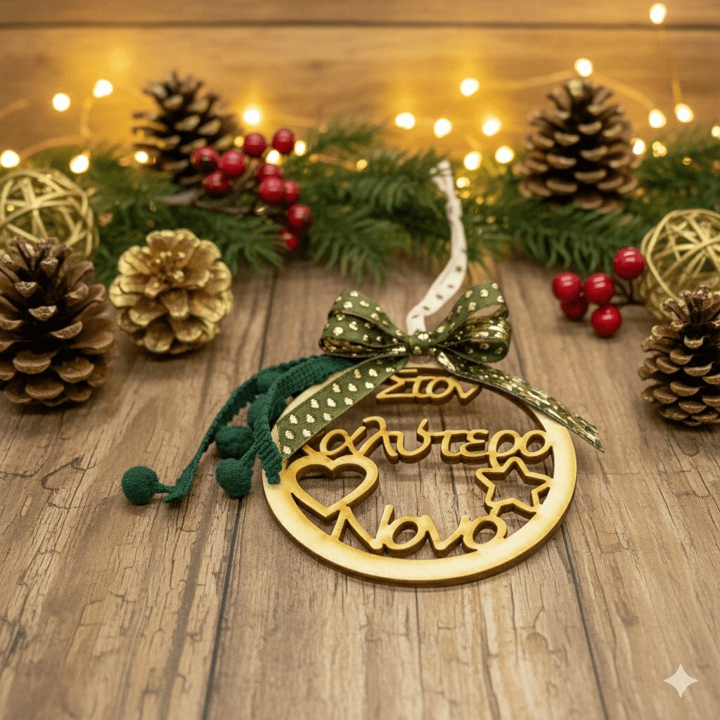 🎄 Χειροποίητο ξύλινο στολίδι-γούρι σε σχήμα μπάλας για τον Νονό.