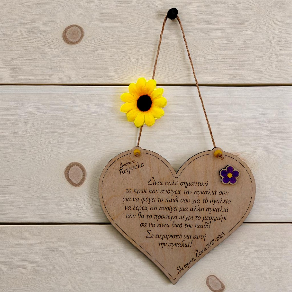 Χειροποίητο Ξύλινο Καδράκι Καρδιά με Αφιέρωση – Δώρο για Δασκάλα ή Δάσκαλο (14x15cm)