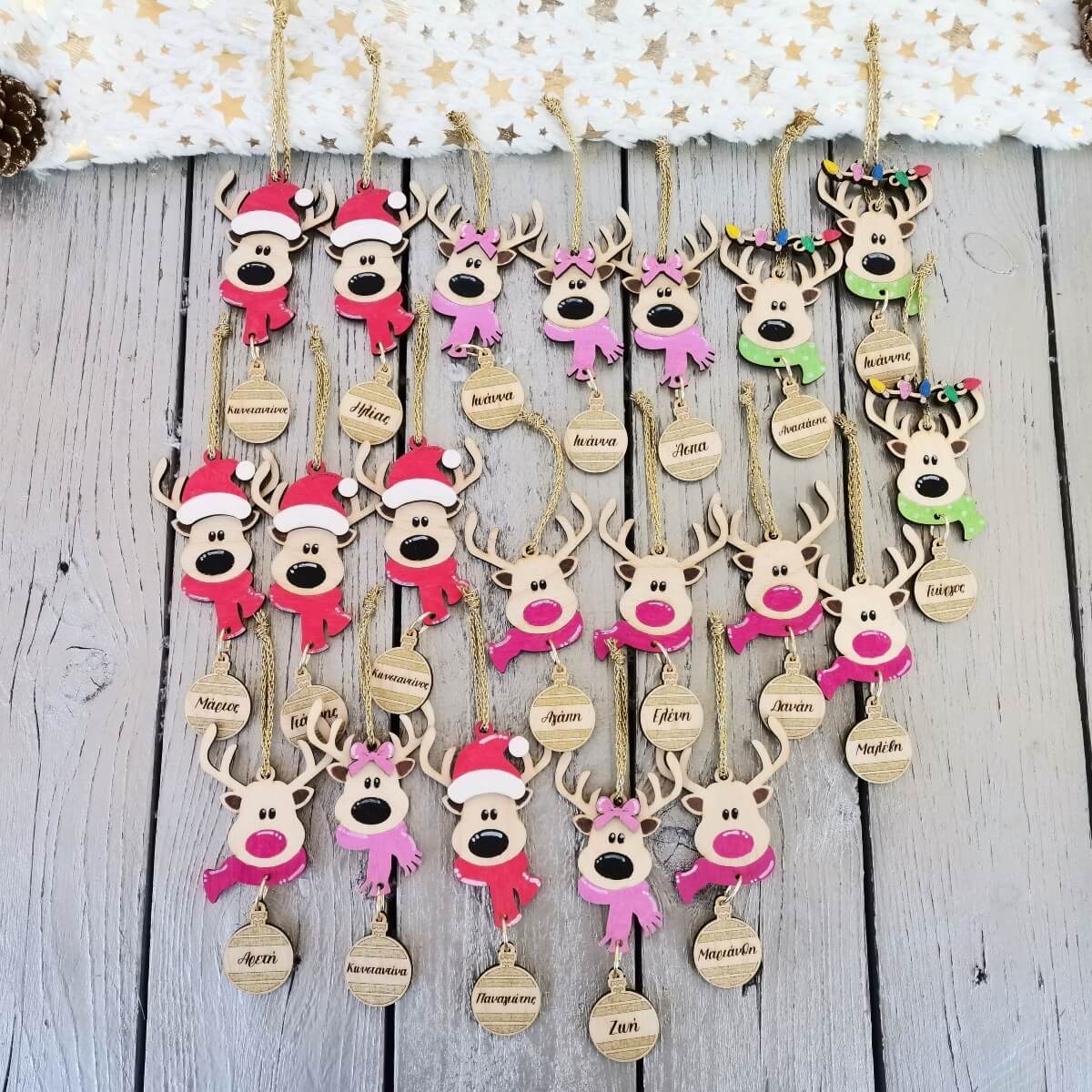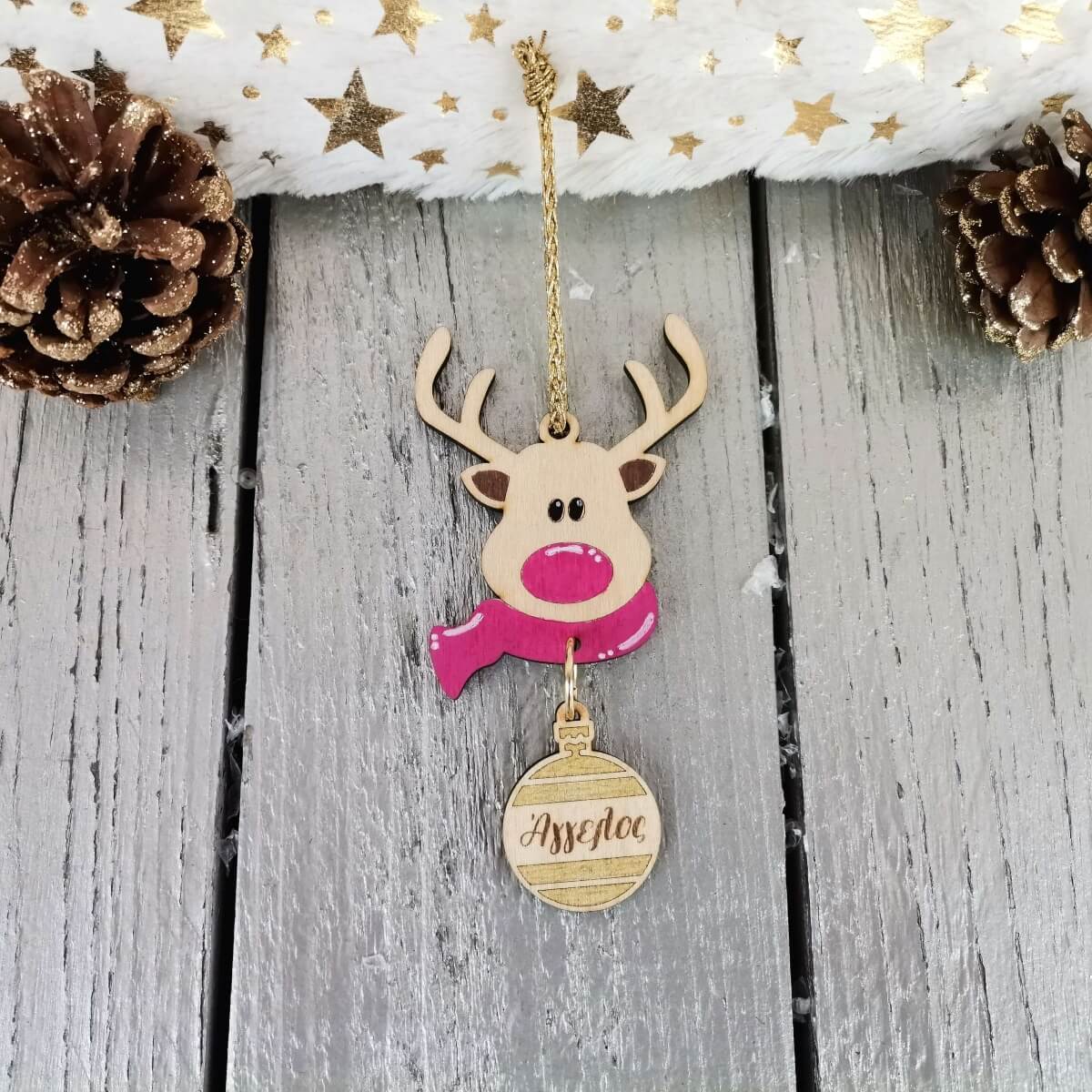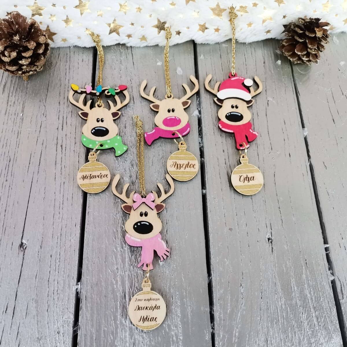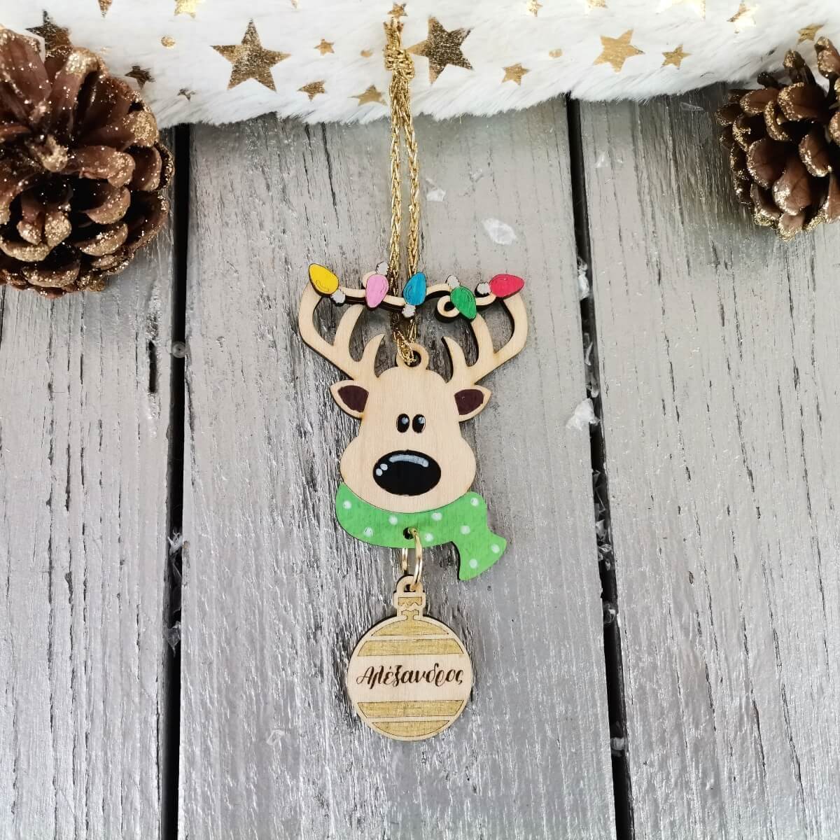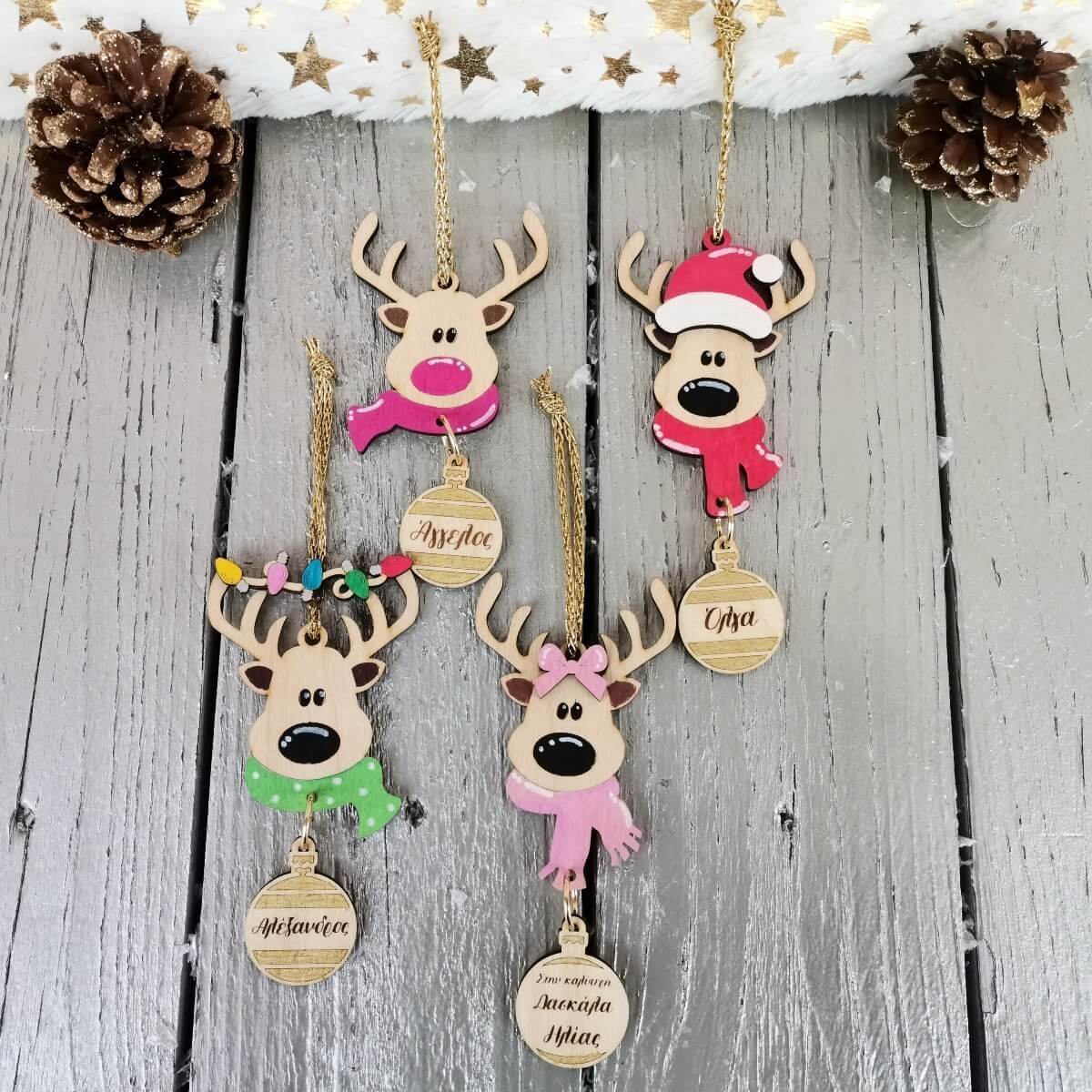 ✨ Κάντε τις γιορτές σας ξεχωριστές με το χειροποίητο ξύλινο προσωποποιημένο χριστουγεννιάτικο στολίδι τάρανδος!