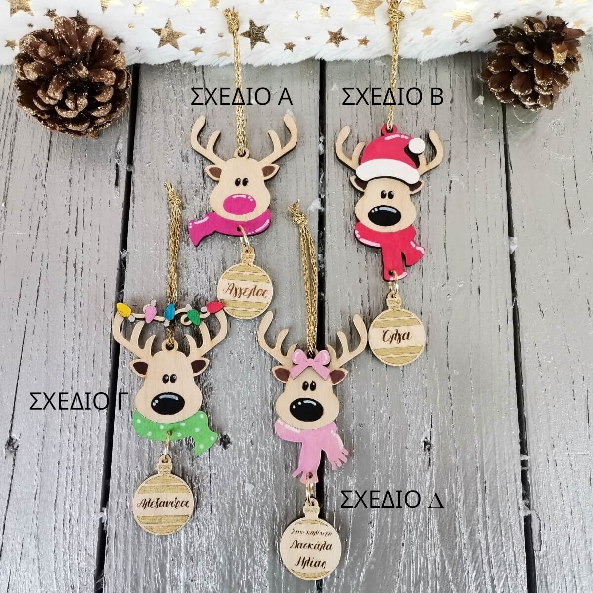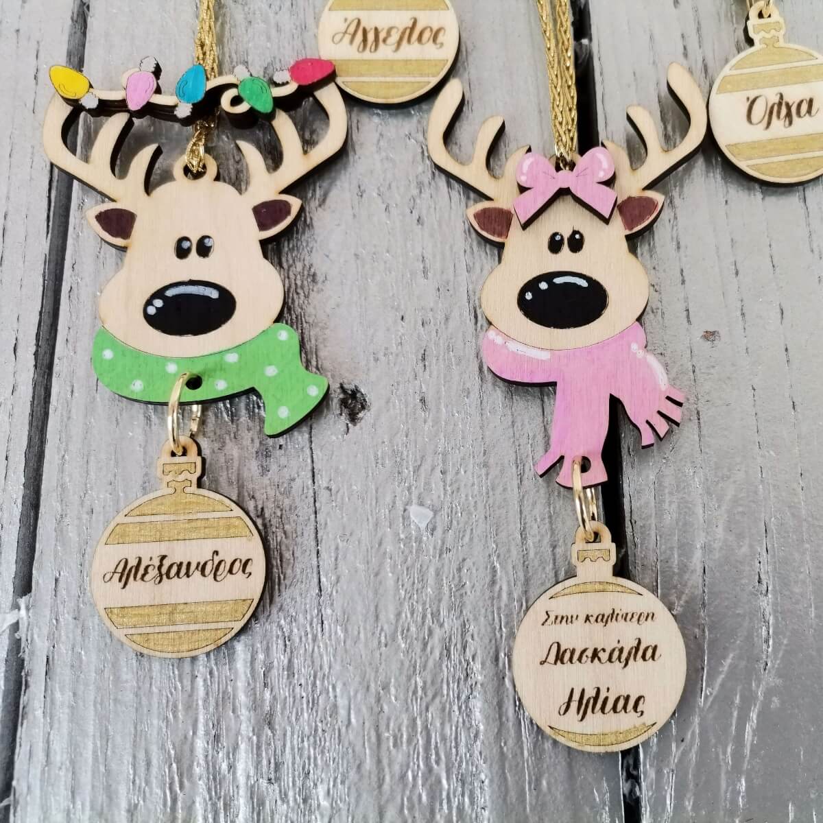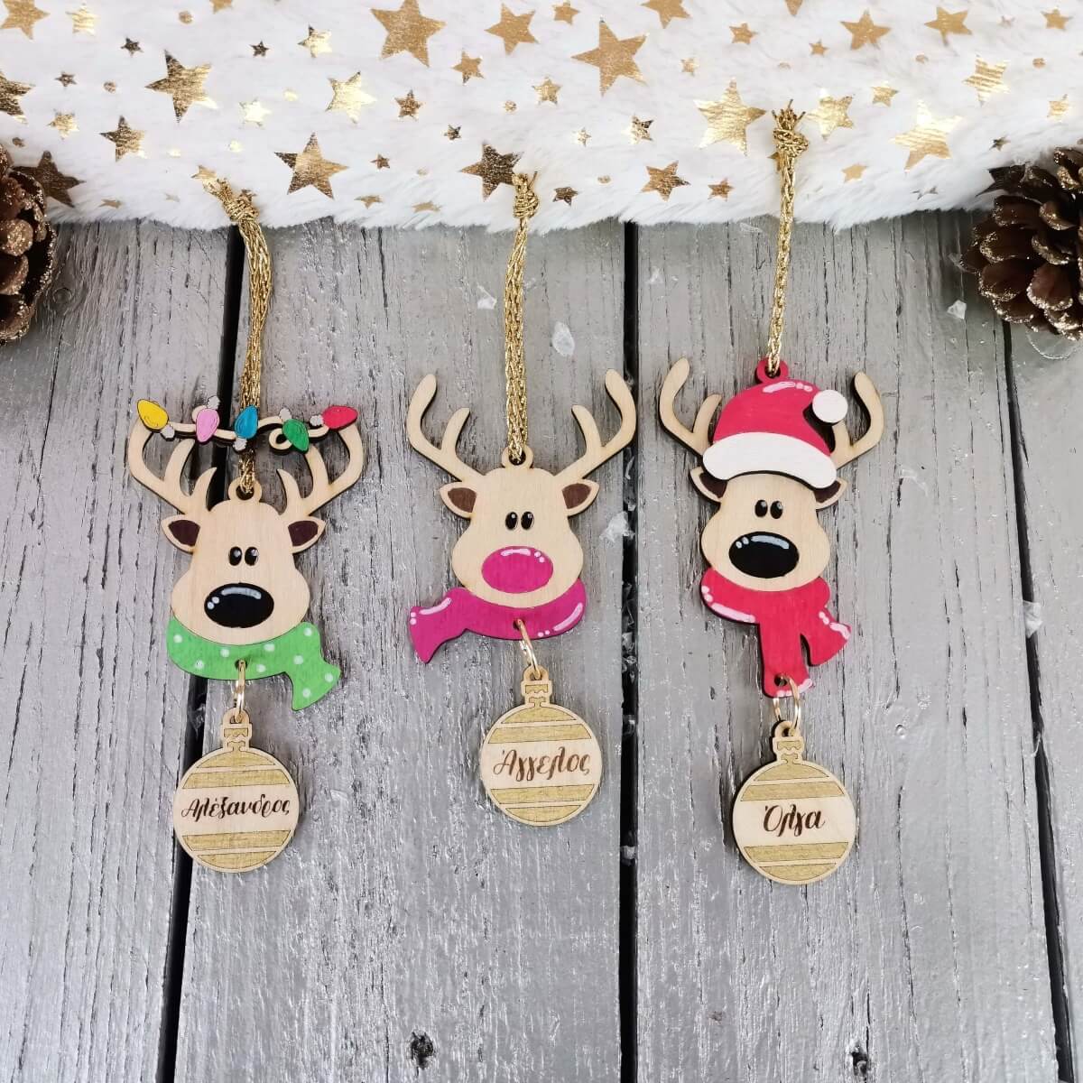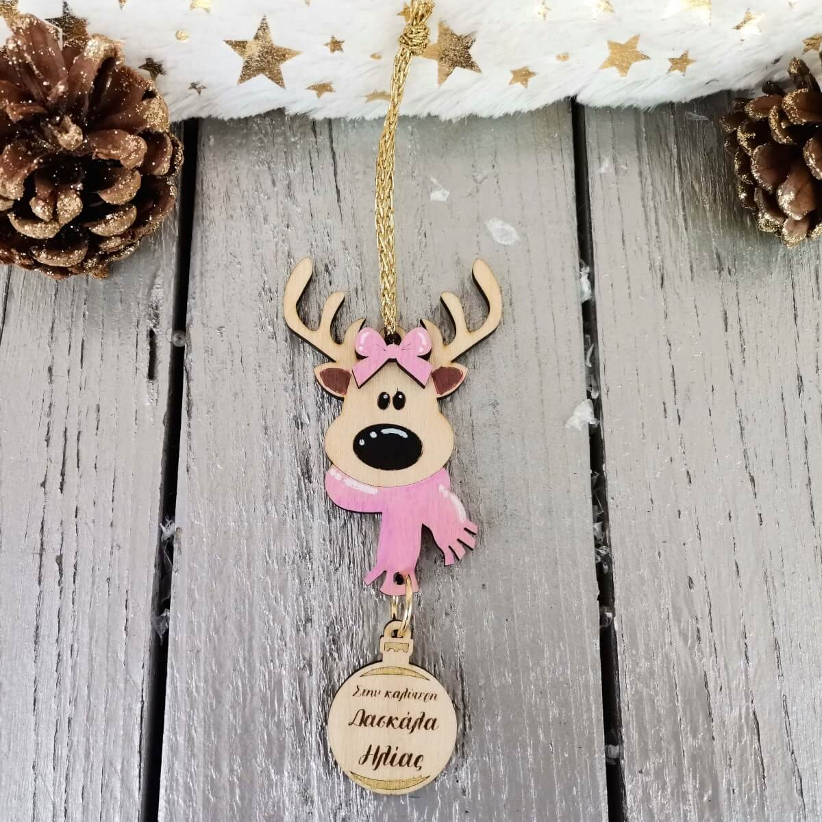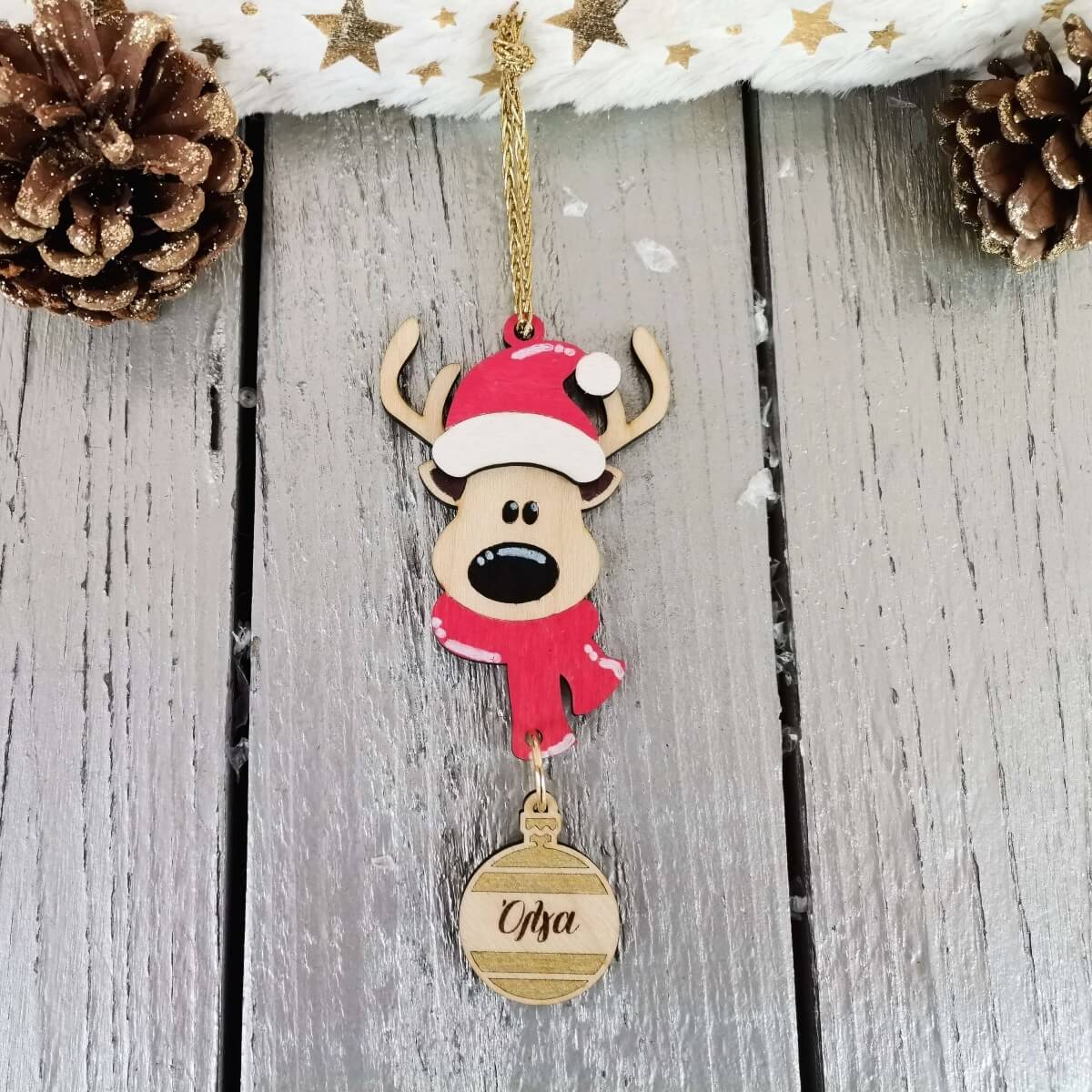 ✨ Κάντε τις γιορτές σας ξεχωριστές με το χειροποίητο ξύλινο προσωποποιημένο χριστουγεννιάτικο στολίδι τάρανδος!