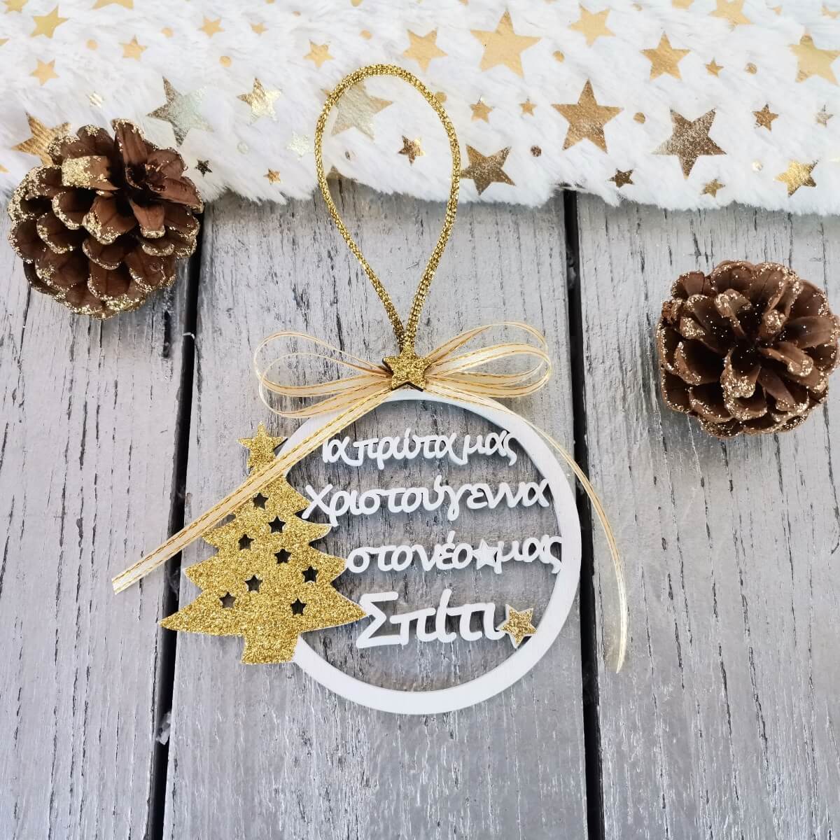 Χειροποίητο Ξύλινο Χριστουγεννιάτικο Στολίδι – Γούρι «Τα Πρώτα μας Χριστούγεννα στο Νέο μας Σπίτι