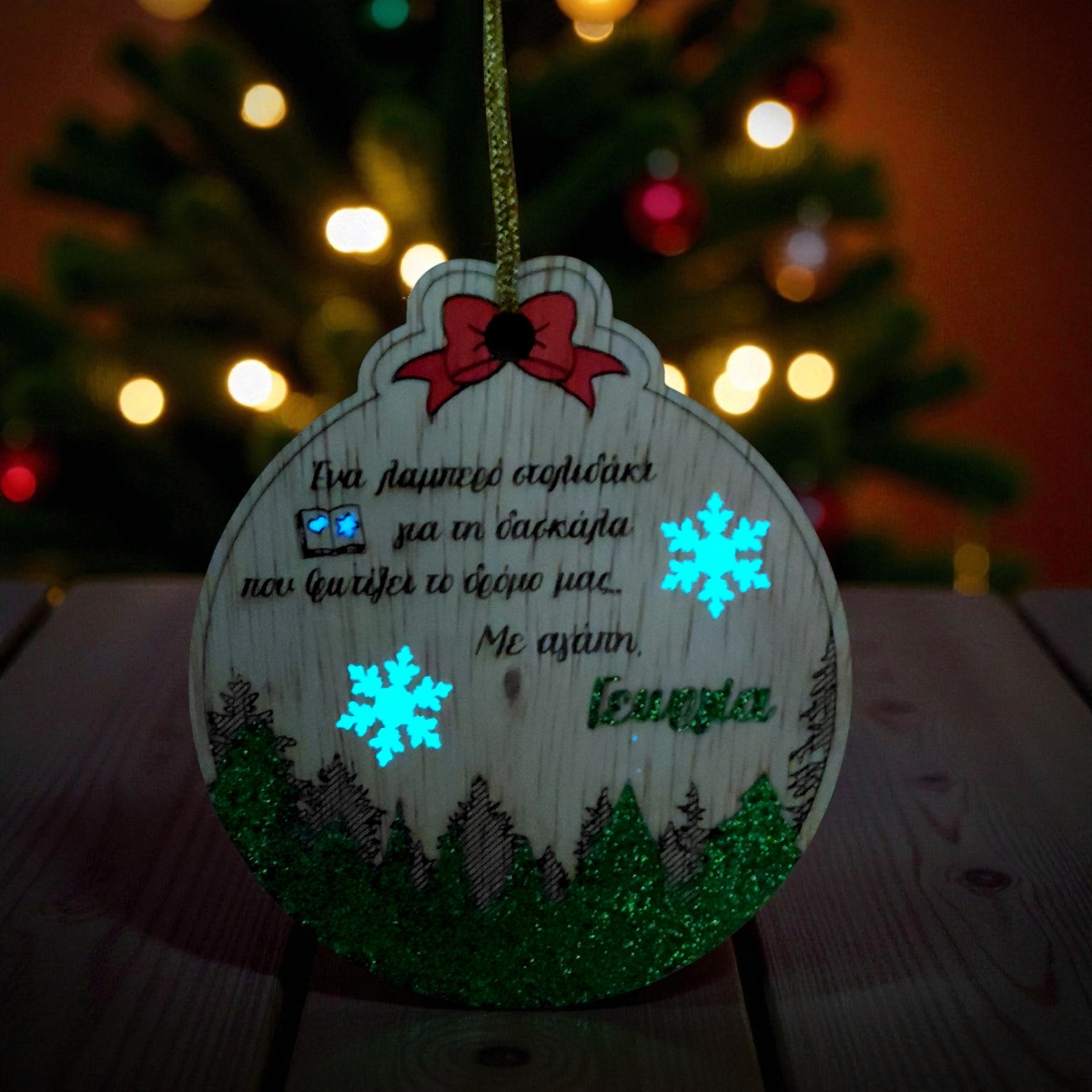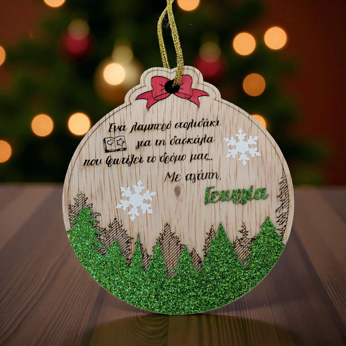 Χειροποίητο Ξύλινο Χριστουγεννιάτικο Στολίδι Προσωποποιημένο – Φωσφορίζει στο Σκοτάδι (Glow) – Δώρο για Δασκάλα