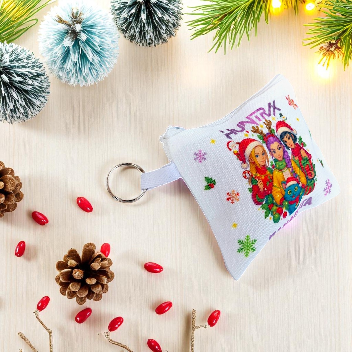 Χειροποίητο παιδικό πορτοφολάκι Huntrix – Xmas Edition! Εμπνευσμένο από την K-pop ταινία “K-Pop: Demon Hunters”, με τις Rumi, Mira & Zoey. Ανθεκτικό, χαριτωμένο και γιορτινό — ιδανικό δώρο για παιδιά που αγαπούν το στυλ και τη μουσική!