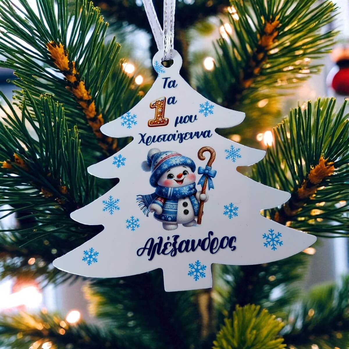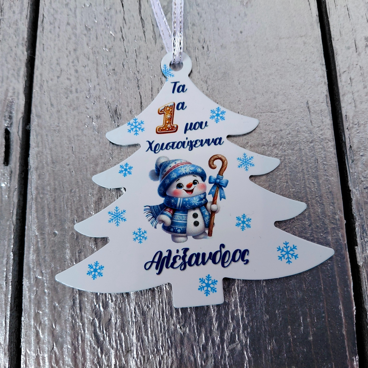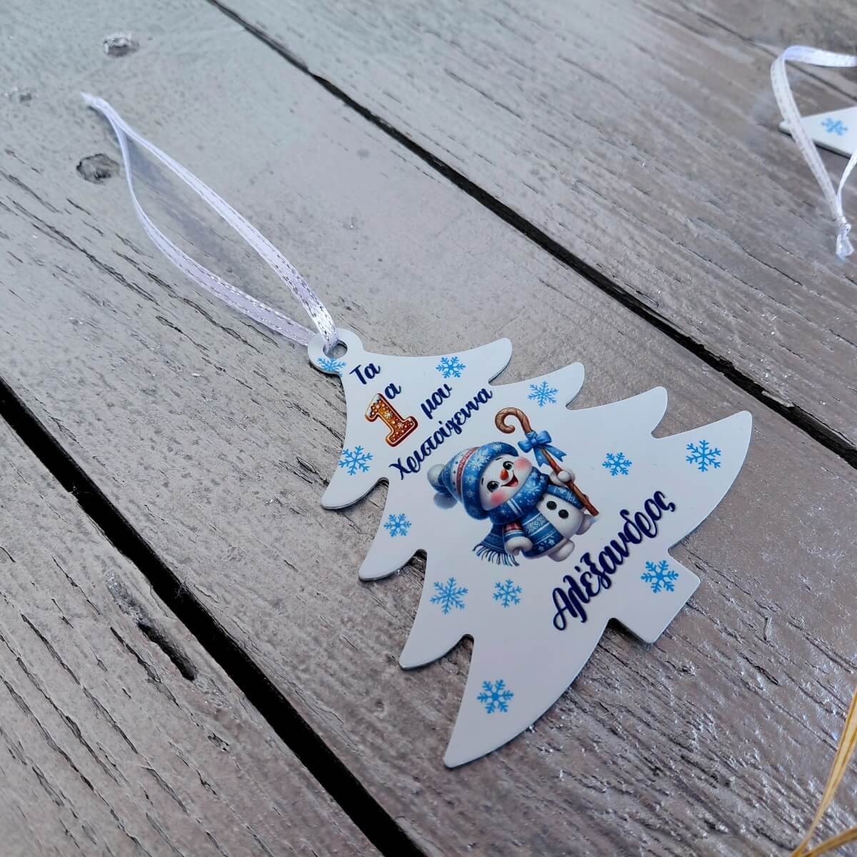 Γιορτάστε τα πρώτα Χριστούγεννα του μωρού σας με ένα ξεχωριστό χειροποίητο Χριστουγεννιάτικο στολίδι δεντράκι με χιονανθρωπο, φτιαγμένο από αλουμίνιο sublimation. 🎄